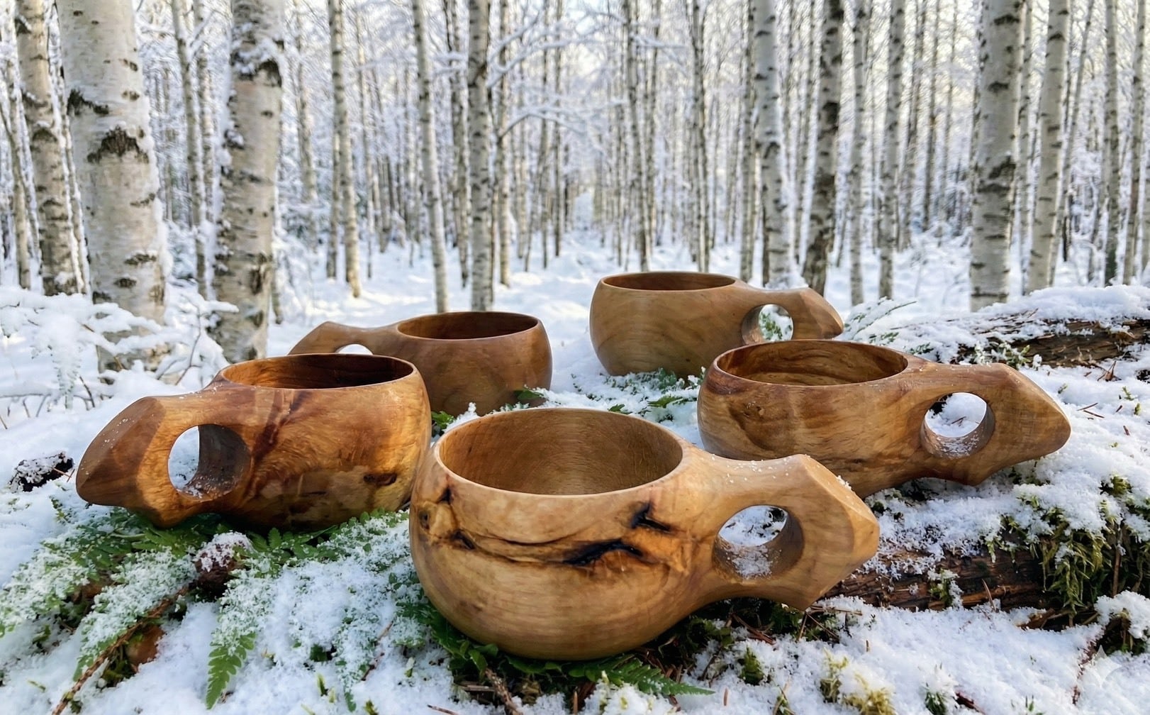 ククサとは、北欧フィンランド発祥の木のカップのことで、「贈られた人は幸せになる」と言われています。北欧では白樺のコブを使って作られますが、北海道道北では地元産白樺の他にもエゾマツなど様々な材を使用しています。